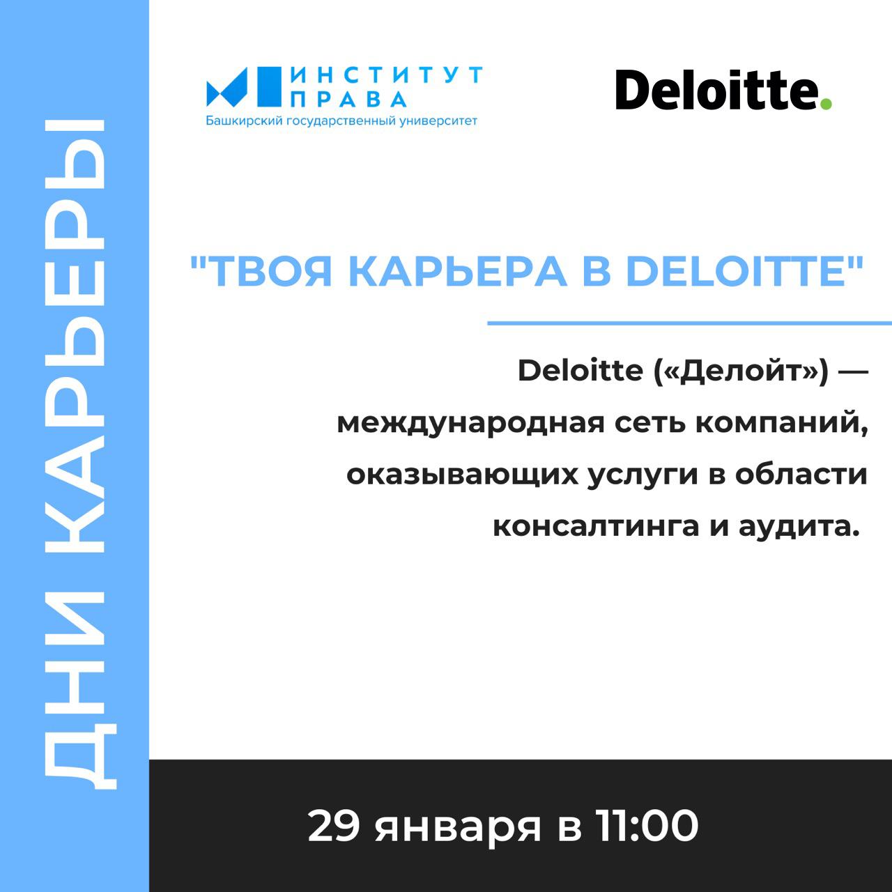 29 января в 11:00 в рамках проведения "Дней карьеры" Института права БашГУ состоится вебинар "Твоя карьера в Deloitte".